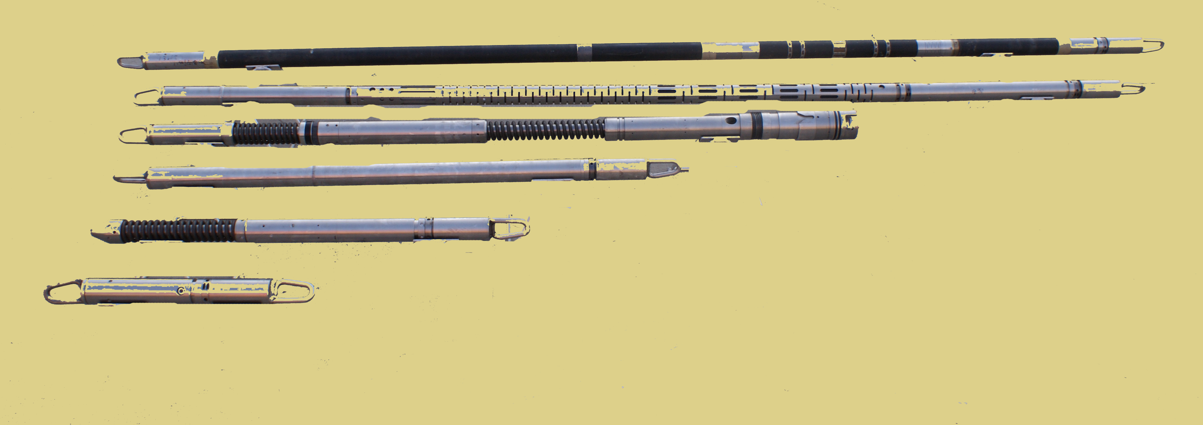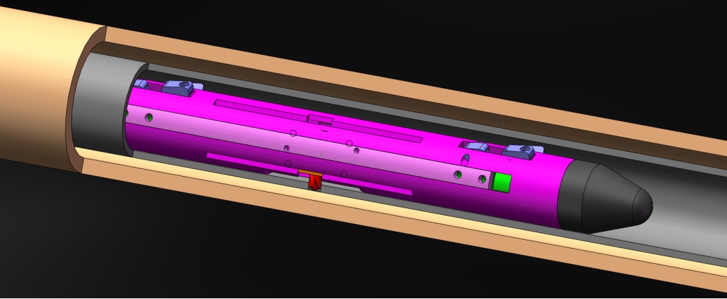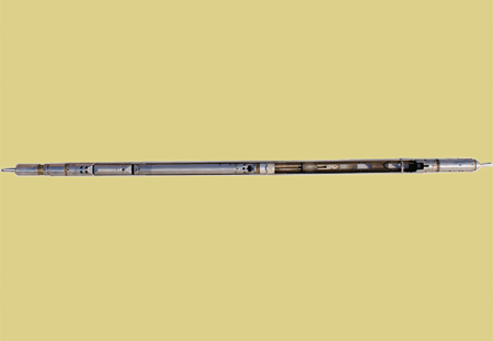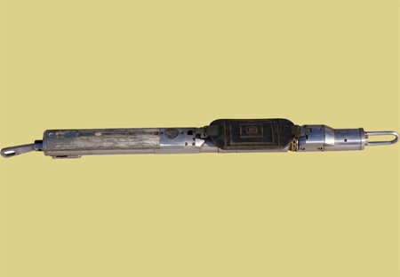 液壓推靠器配接能譜密度與微球復(fù)合探頭,使其貼靠井壁以滿足測(cè)…